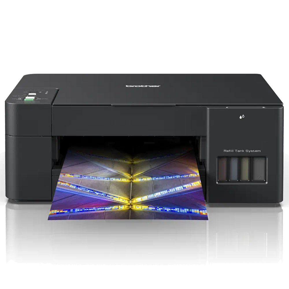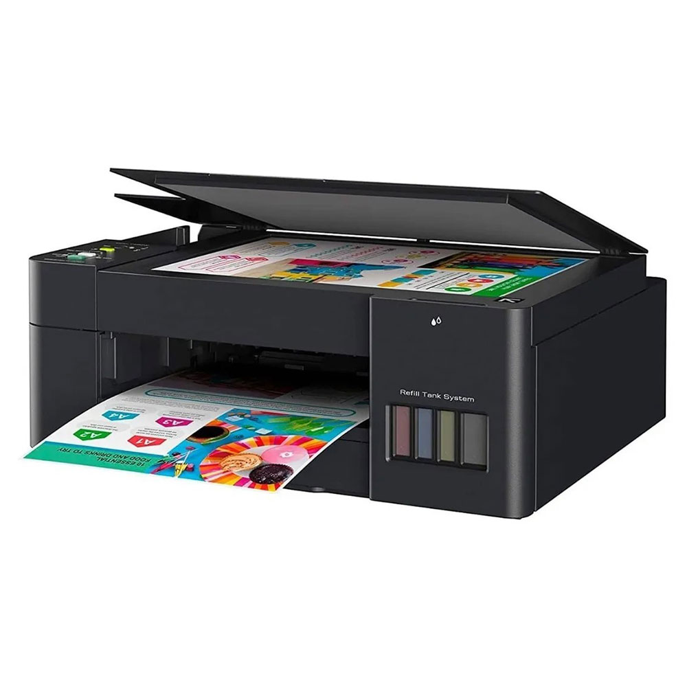 Impresora multifuncional Brother DCPT420W con conexión USB y Wifi, sistema de tinta recargable, impresión económica de alta calidad.
