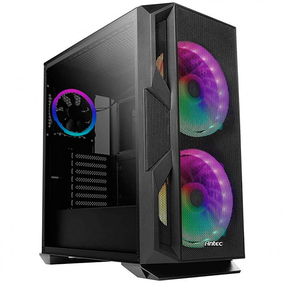 Case Antec NX800 con 3 ventiladores RGB (2 delanteros y 1 trasero). Diseño ATX y vidrio templado. Color negro.