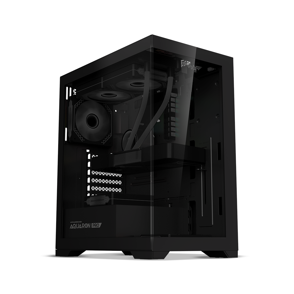 Case Gaming Armaggeddon Aquaron Pro ATX BLACK con vidrio templado lateral y frontal, sin ventiladores adicionales con compatibilidad con placas mATX/ITX.