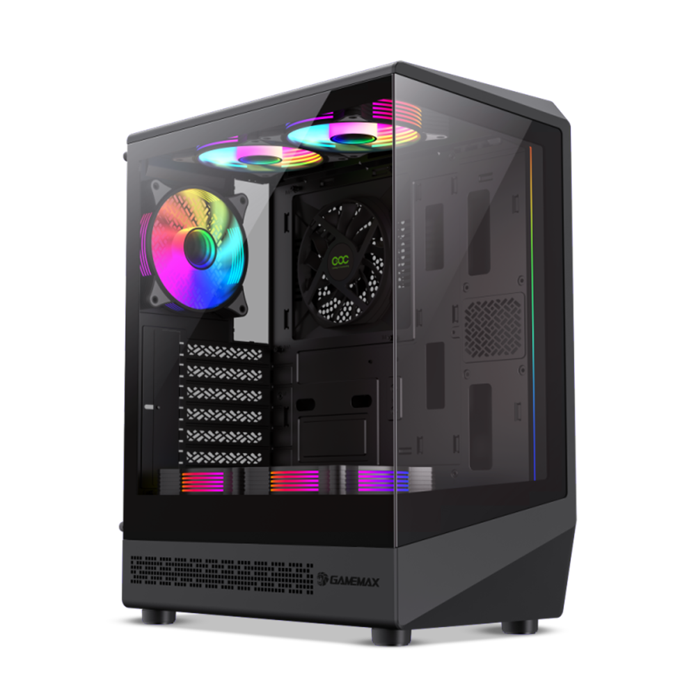 Case Gaming Gamemax Vista COC AB Micro-ATX BLACK con vidrio templado frontal y lateral, 5 ventiladores incluidos RGB ,1 ventilador coc y compatibilidad con placas mATX/ITX.