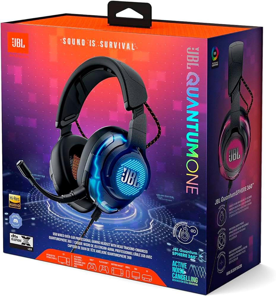 Audífonos JBL Quantum One profesionales con micrófono desmontable, cancelación de ruido y control de audio-chat.