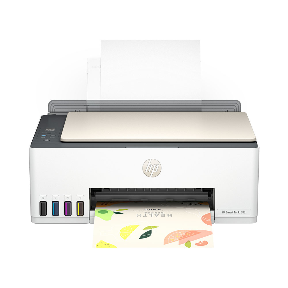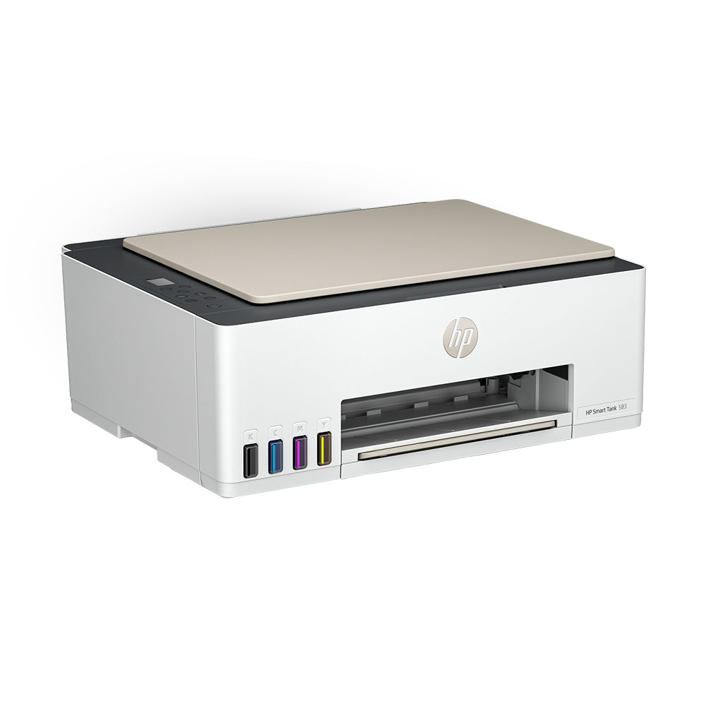 Impresora Todo-en-Uno HP Smart Tank 583 con sistema de tinta continua, ideal para hogar y oficina. Imprime, escanea y copia con alta calidad, conectividad Wi-Fi, gran rendimiento y bajo costo por página.