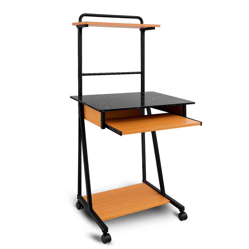 Mesa Terrax de madera con vidrio color negro, con una altura de 120 cm de alto x 60 cm de ancho. Tiene ruedas para fácil movilidad, ideal para una computadora de oficina.