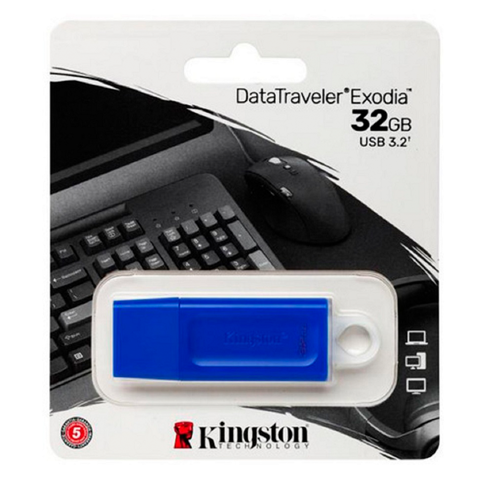 Pendrive Kingston DataTraveler Exodia de 32GB con USB 3.2, en color azul, ideal para transferencias rápidas de datos.