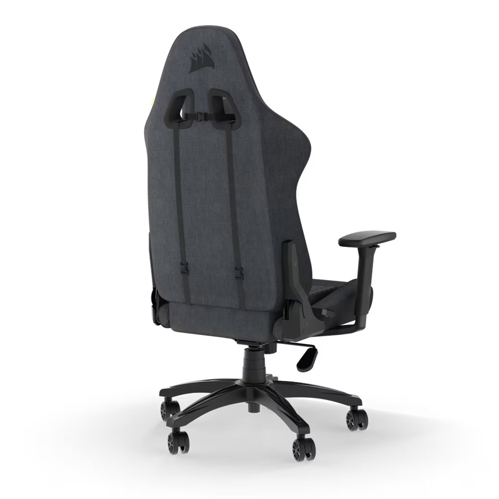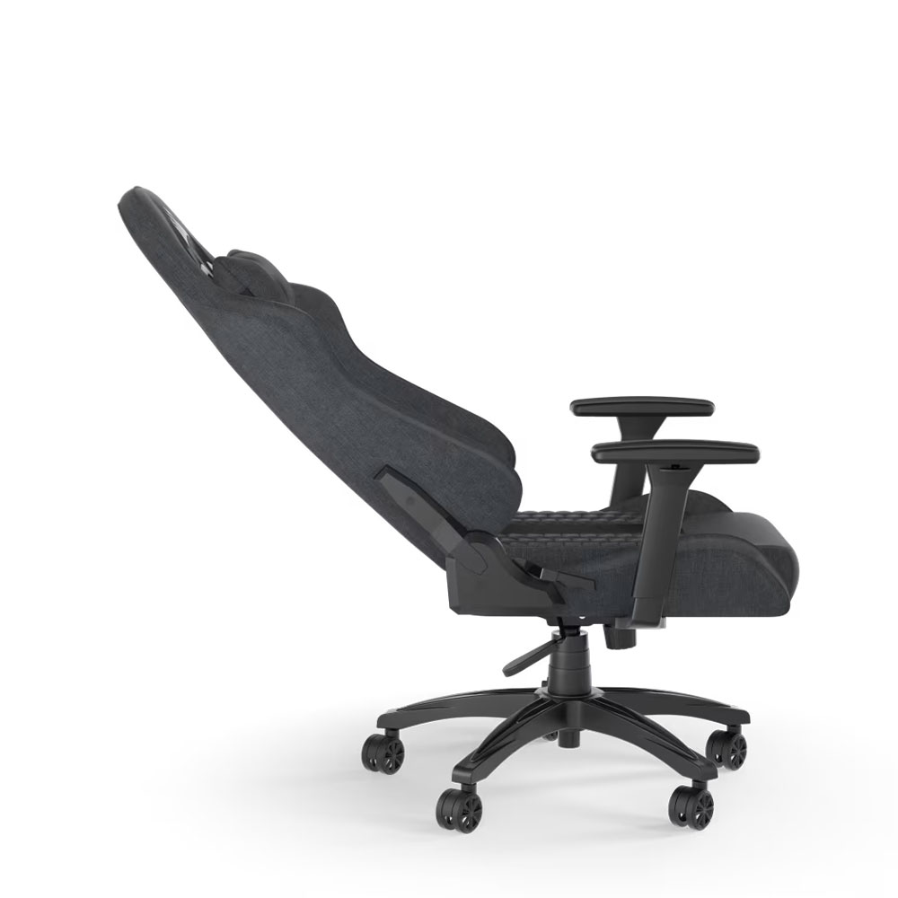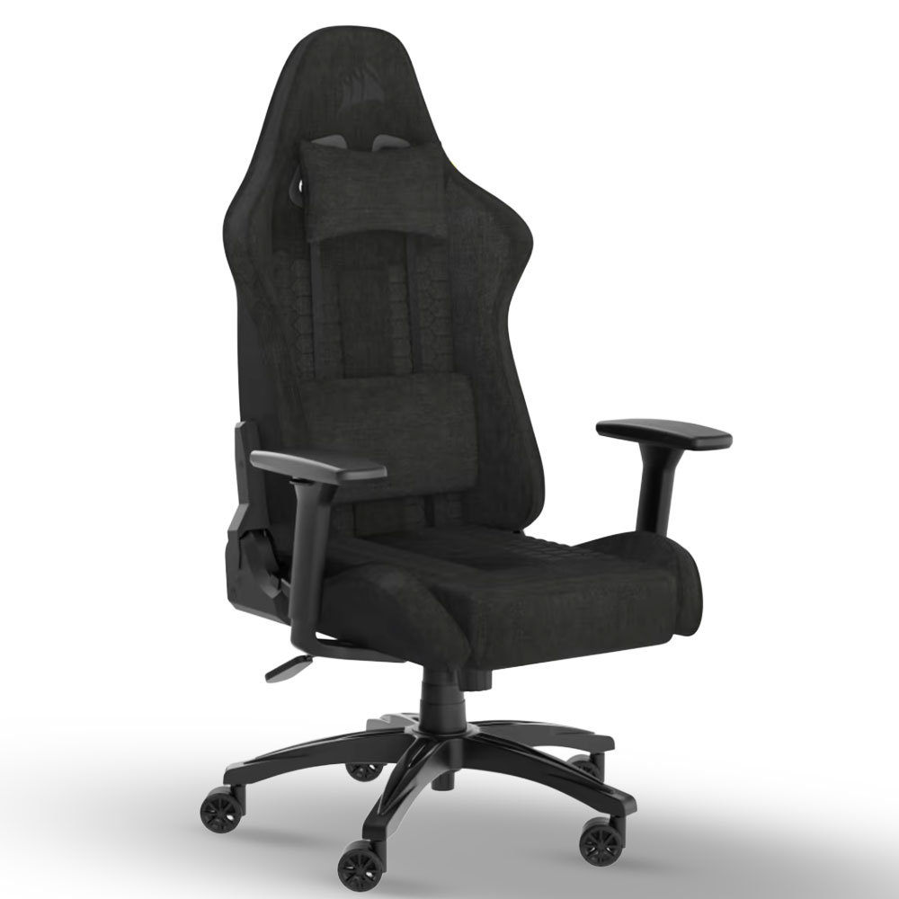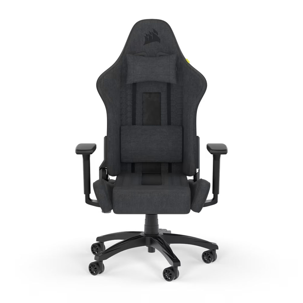 Silla gamer Corsair TC100 Relaxed con tapizado en tela transpirable de alto rendimiento, estructura de acero reforzado y mecanismo de reclinación 90°–160°. Incorpora almohada lumbar y cervical desmontables, reposabrazos 2D ajustables, elevador gas Clase 4 y base robusta con ruedas silenciosas. Diseñada para uso prolongado en gaming y trabajo, combina soporte ergonómico con confort estable.