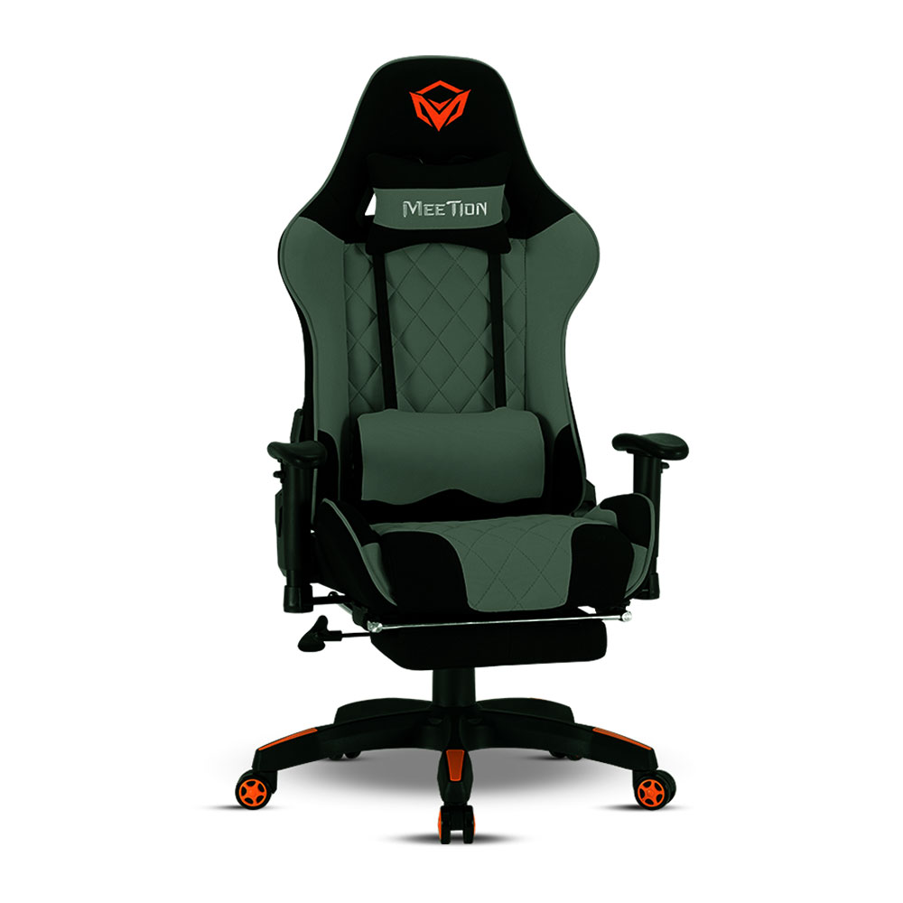 Silla Gamer Meetion MT-CHR25 ergonómica con masaje y reposapiés. Cuenta con respaldo reclinable, altura ajustable, reposabrazos giratorios 2D, almohadas lumbar y cervical y ruedas giratorias para máxima comodidad en largas sesiones de juego o trabajo. Diseño resistente y confortable para uso intensivo.