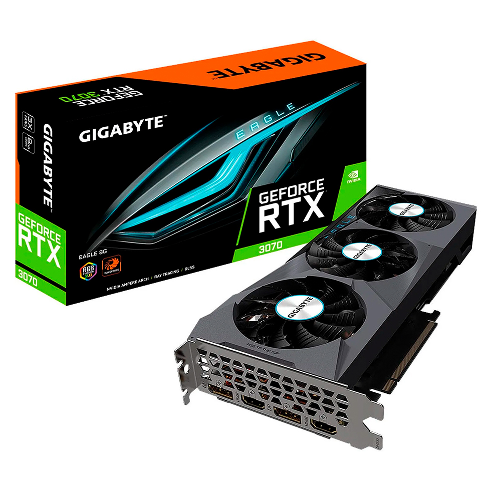Tarjeta gráfica Gigabyte RTX 3070 OC, 8GB GDDR6, 3 ventiladores, rendimiento avanzado con 2 HDMI y 2 DisplayPort.